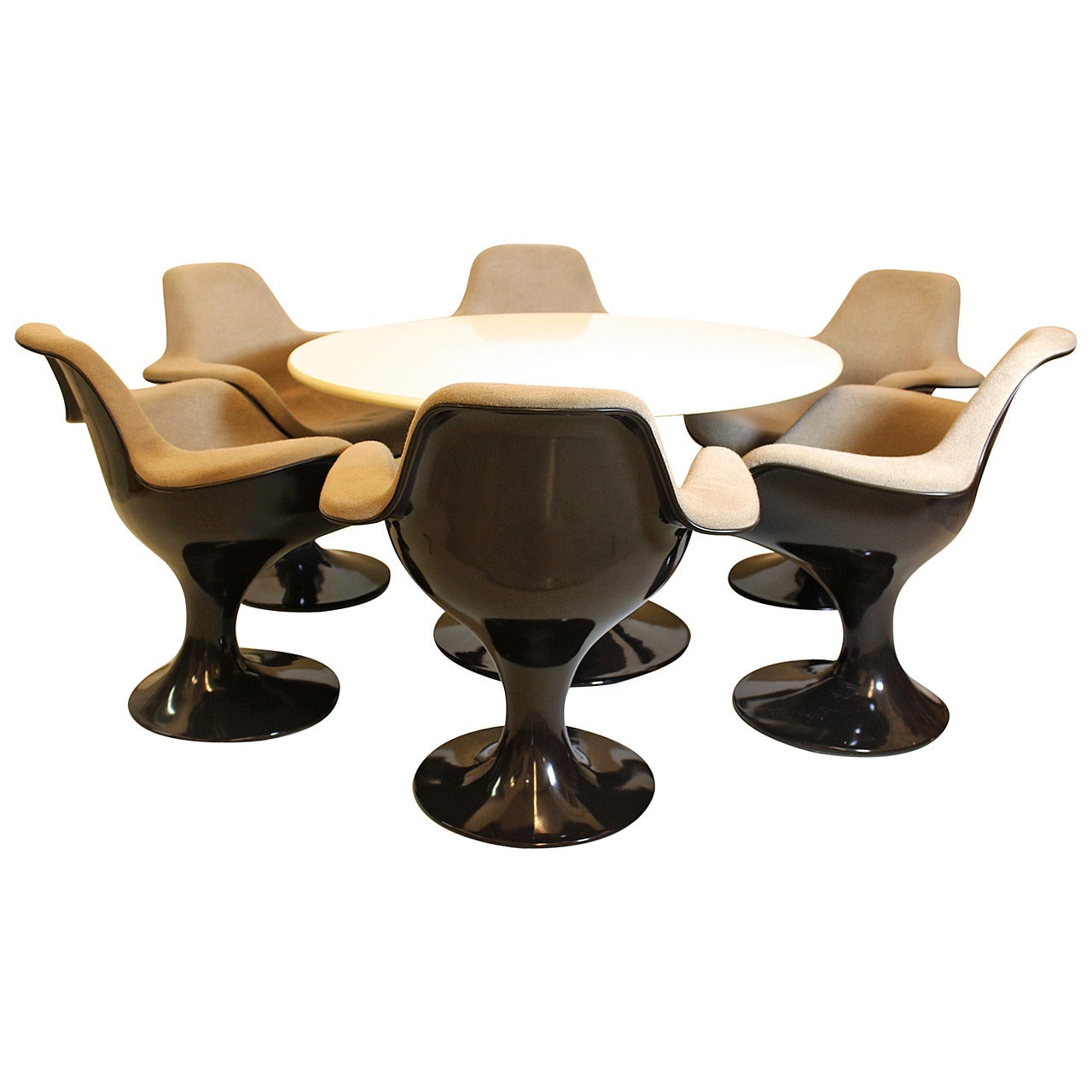 The fiberglass white tulip table are made from strong materials that are highly durable to give you long lifespans. The tulip dining table is intended for everyday use. We understanding that buying one is a big investment. A white tulip dining table with matching laminate top and four x based swivelling armchairs all with sand, cream ,taupe salt and pepper upholstered contract fabric cushions. Tabletop's available in a wide range of fiberglass, marbles, and wood.