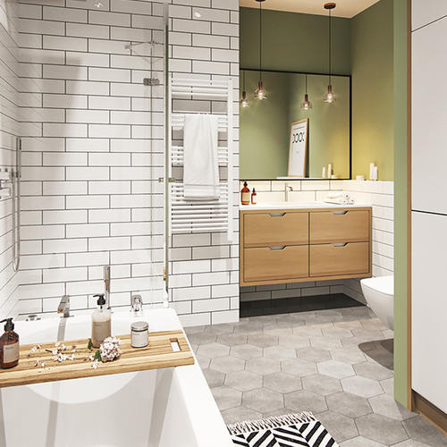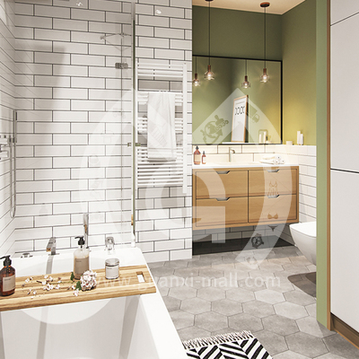 If you have a limited floor space but a tall bathroom, you might like to choose this option. Suitable for indoor use on residential or commercial walls. Ceramic wall tile (11.6252 sq. It will visually open up the space, giving you the illusion that the space is wider and longer than it actually is. This layout is particular suitable for tall yet smaller bathrooms and kitchens.